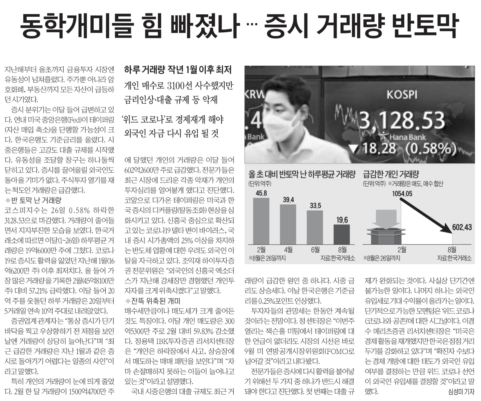 | 210824 - 국내 종목 장투는 어렵다?, 카카오 모빌리티 IPO 시동, 일진하이솔루스 기관 청약 흥행 성공 | 경제뉴스 스크랩 (0) | 2021.08.24 |
