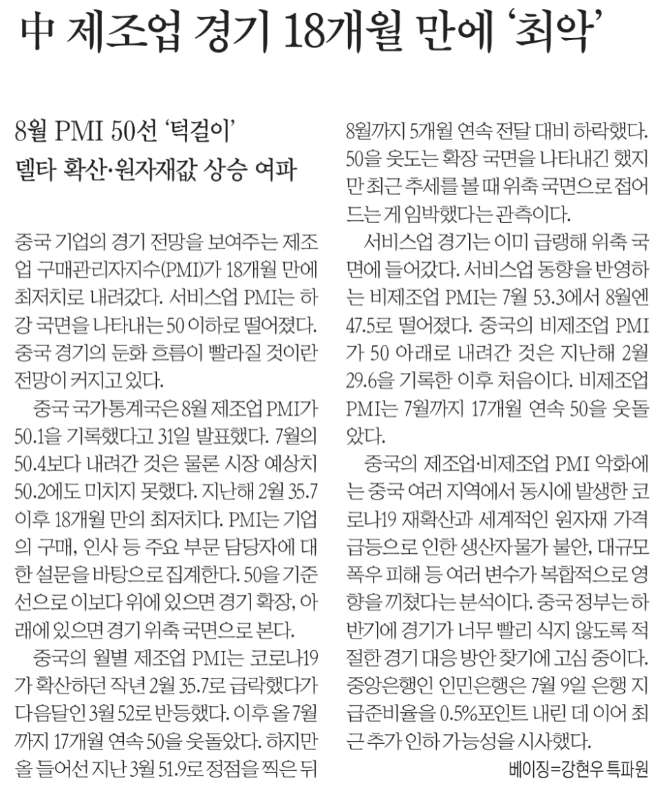 | 210831 - 3차 신규 공공택지 발표, 중국 청소년 게임 셧다운, 일본 반도체 미-대만과 동맹 | 경제뉴스 스크랩 (0) | 2021.08.31 |