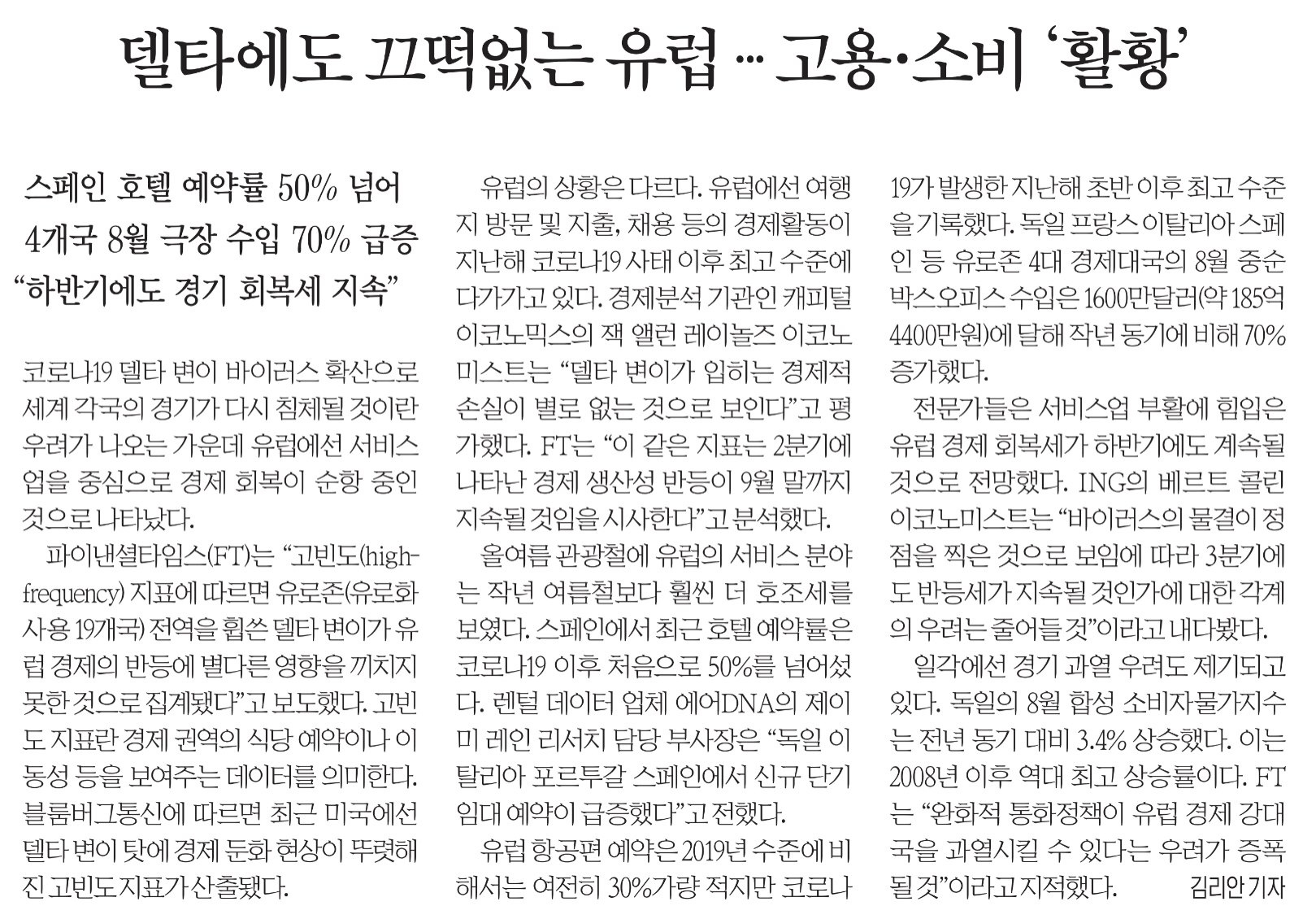 | 210830 - 미 증시 최고치, 금리인상 시점에 주목, 카카오 이직선호도 1위 | 경제뉴스 스크랩 (0) | 2021.08.30 |