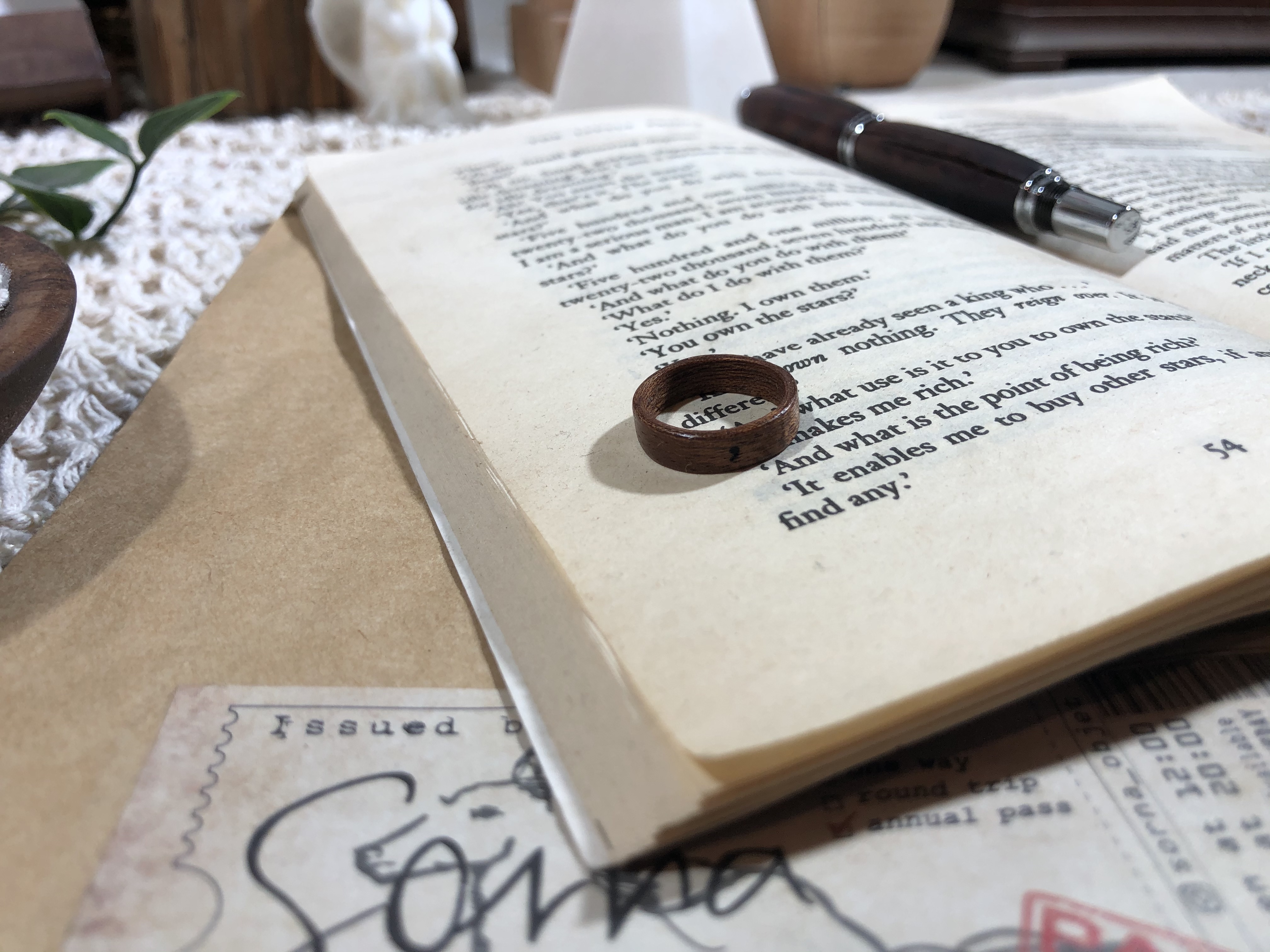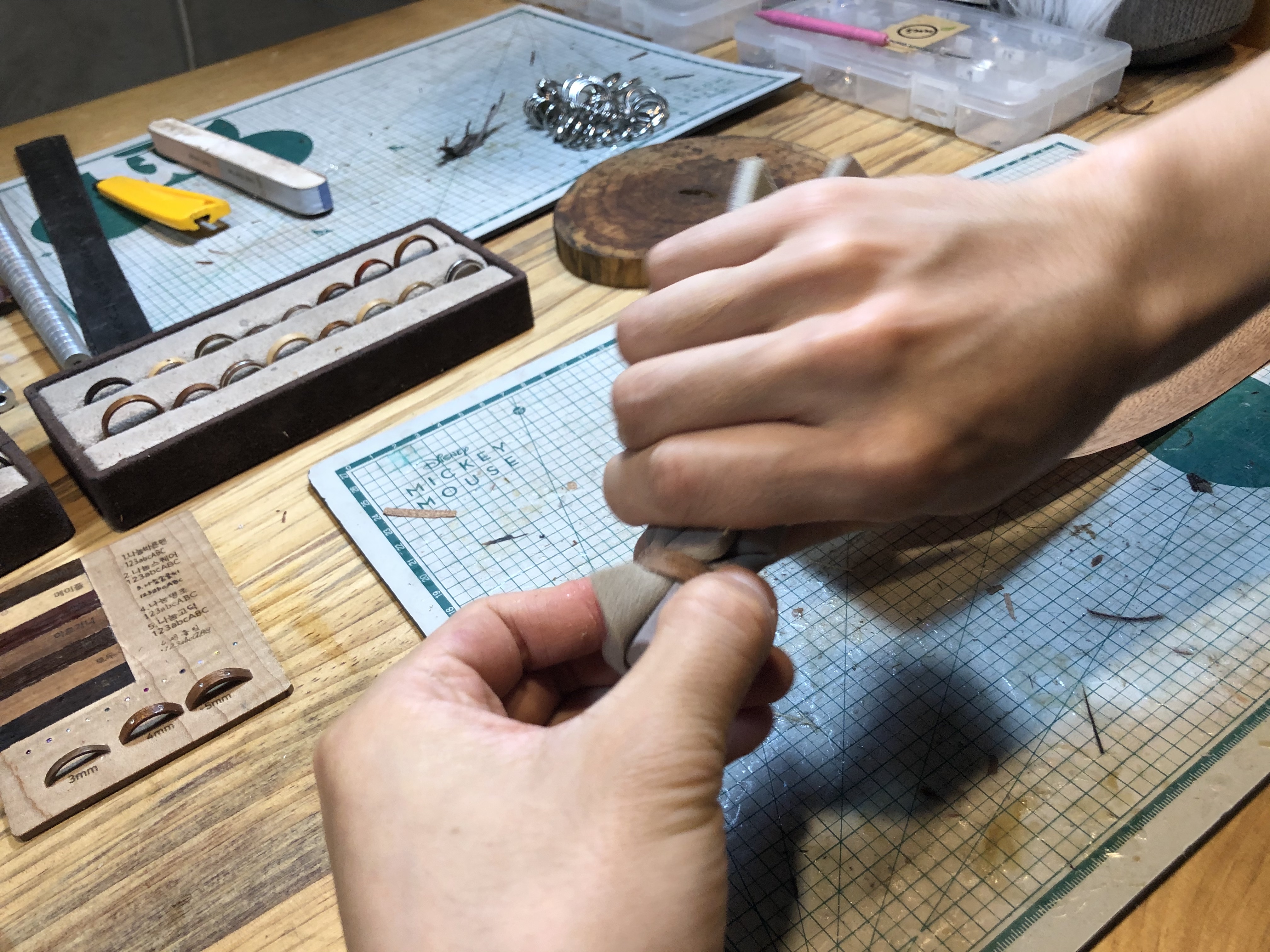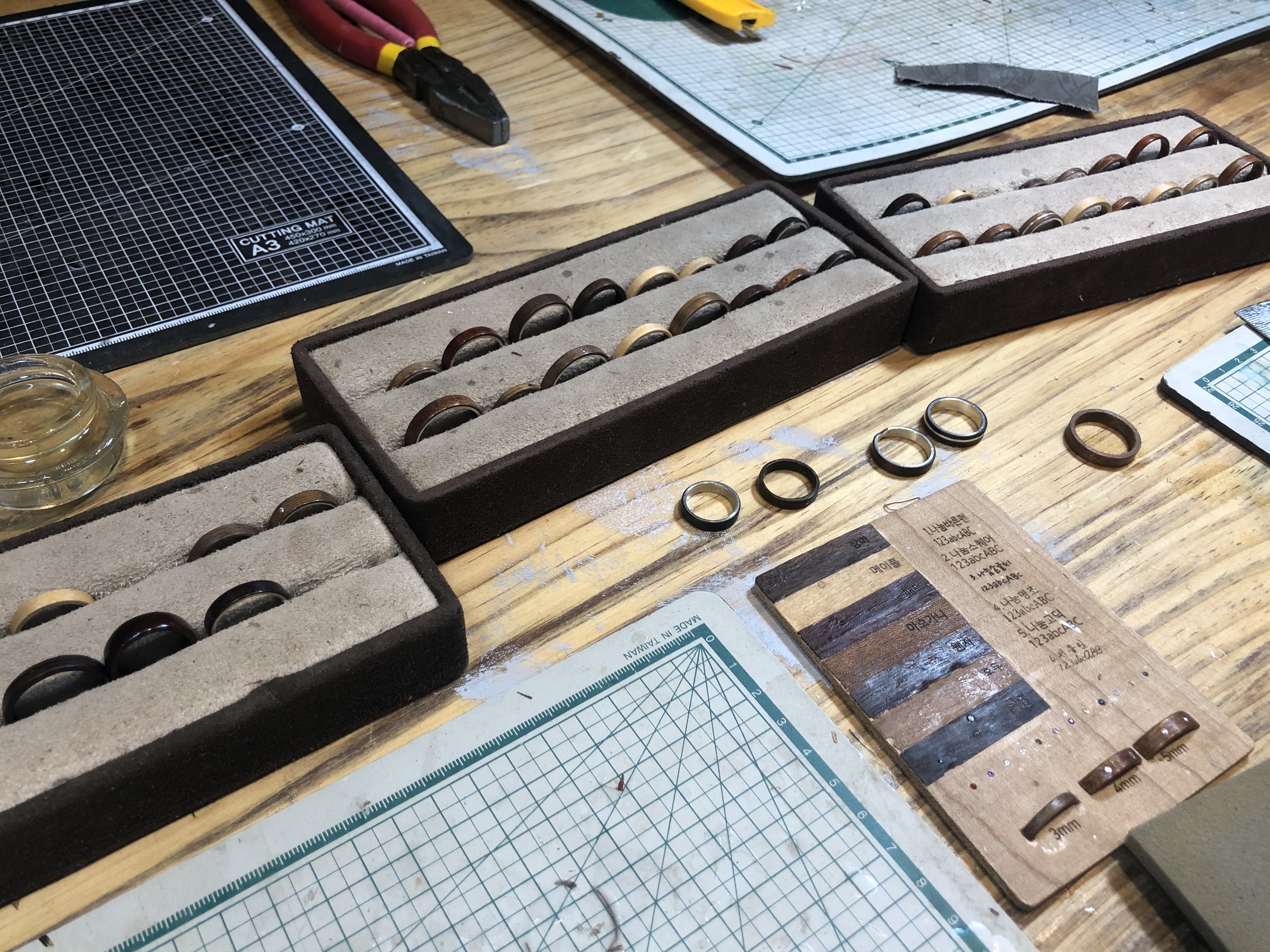 손가락 크기를 재고 원하는 디자인, 나무, 두께 등을 정합니다.