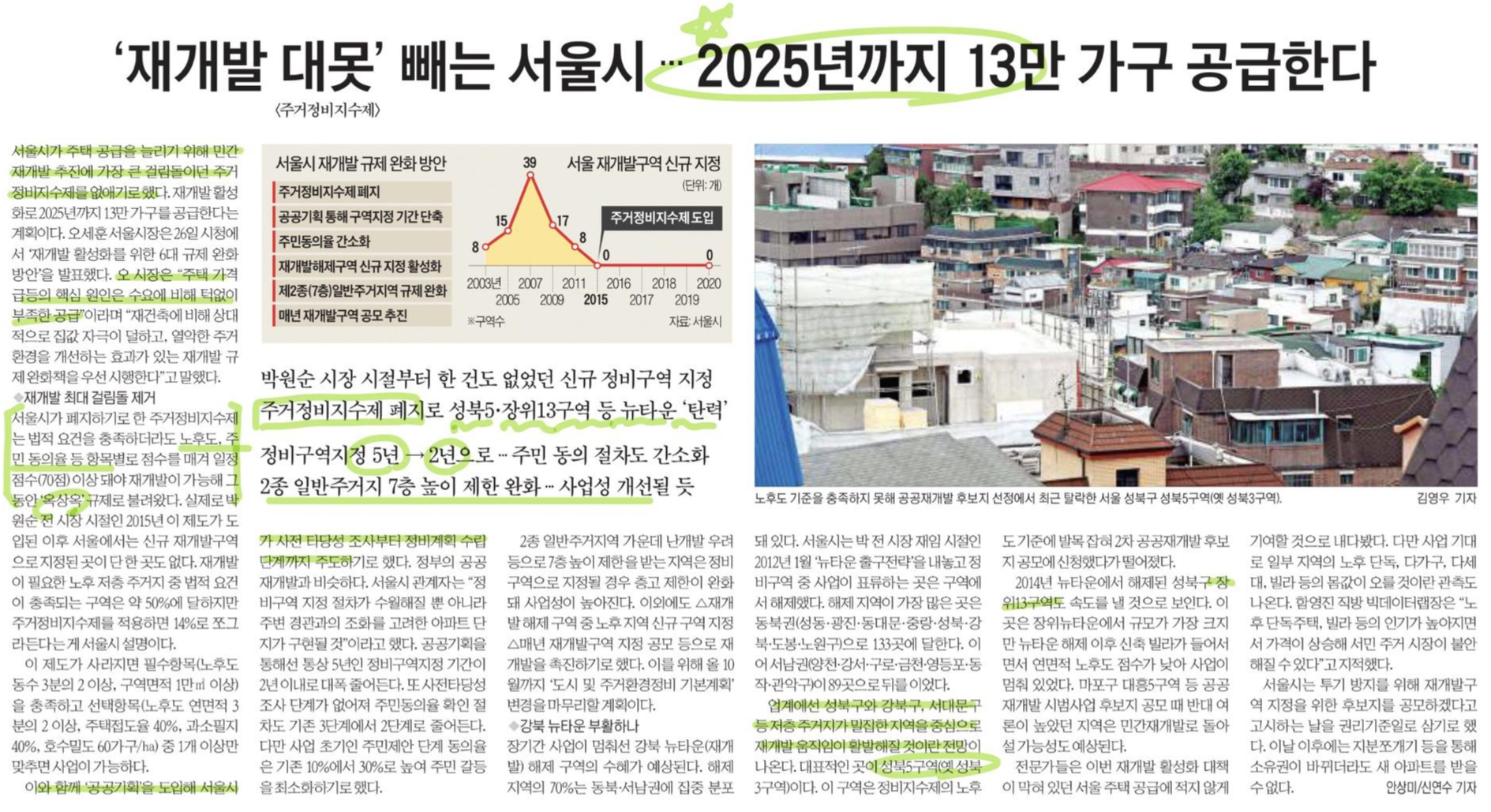 그 결과 2015년 이후 서울 내 신규 정비구역 지정이 한건도 진행되지 않았다는 것!!