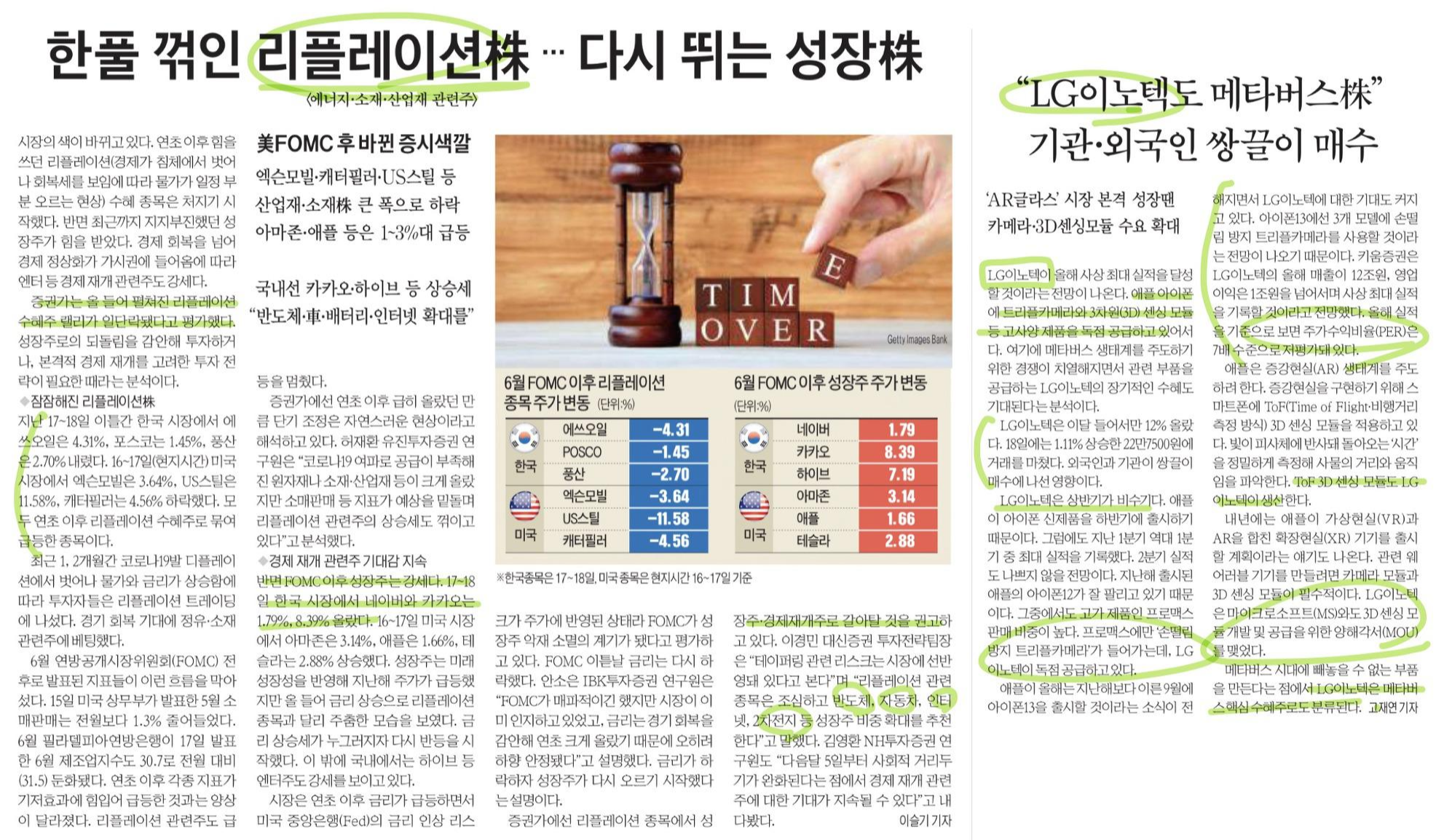 미 FOMC이후 에너지, 소재, 산업재 관련주의 상승세가 꺽이고 성장주가 다시 주목 받고 있습니다.