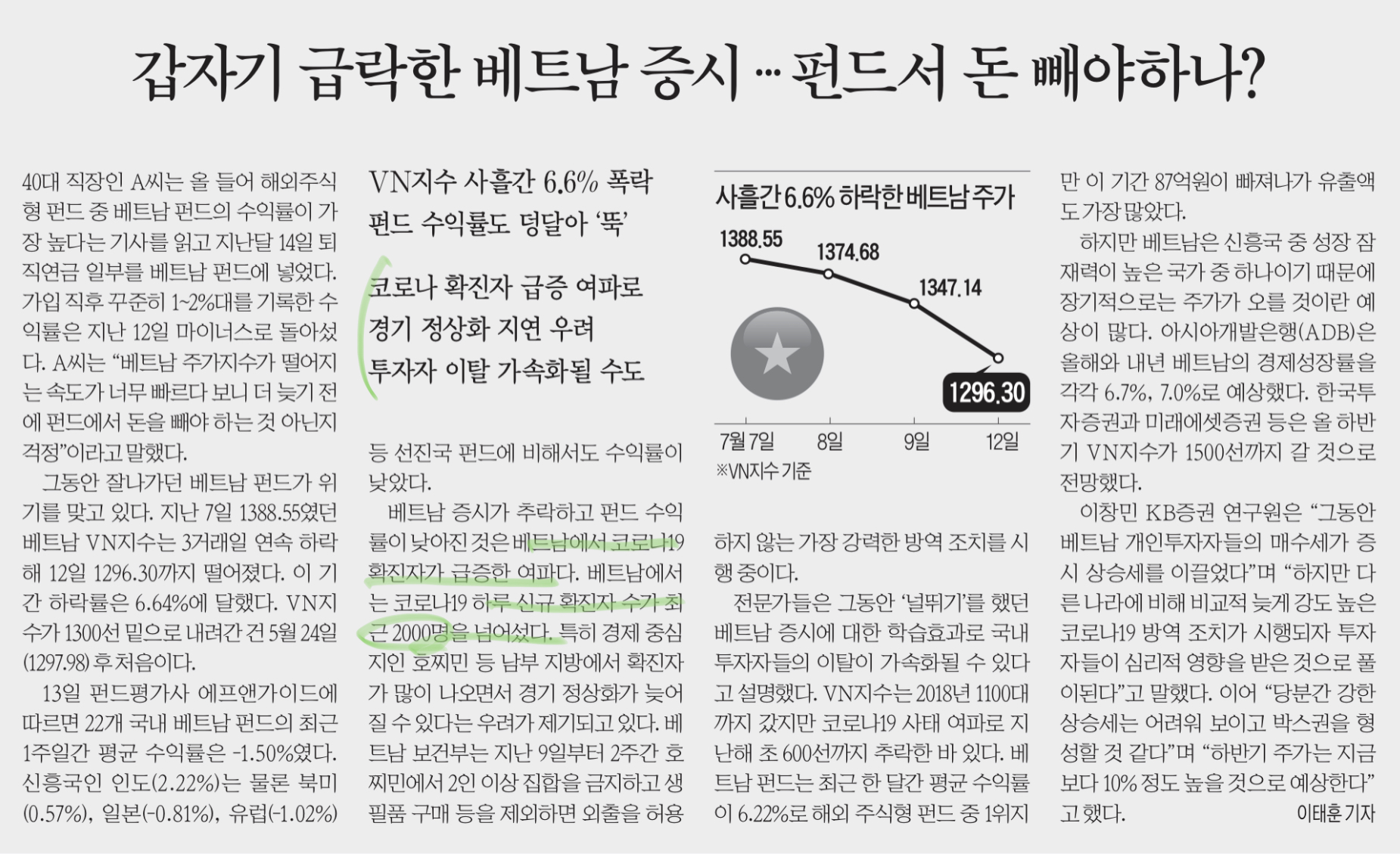 | 210708 - 코로나 4차 유행, 삼성전자 어닝서프라이즈, 미 주식 폭락장이 올까 | 경제뉴스 스크랩 (0) | 2021.07.08 |